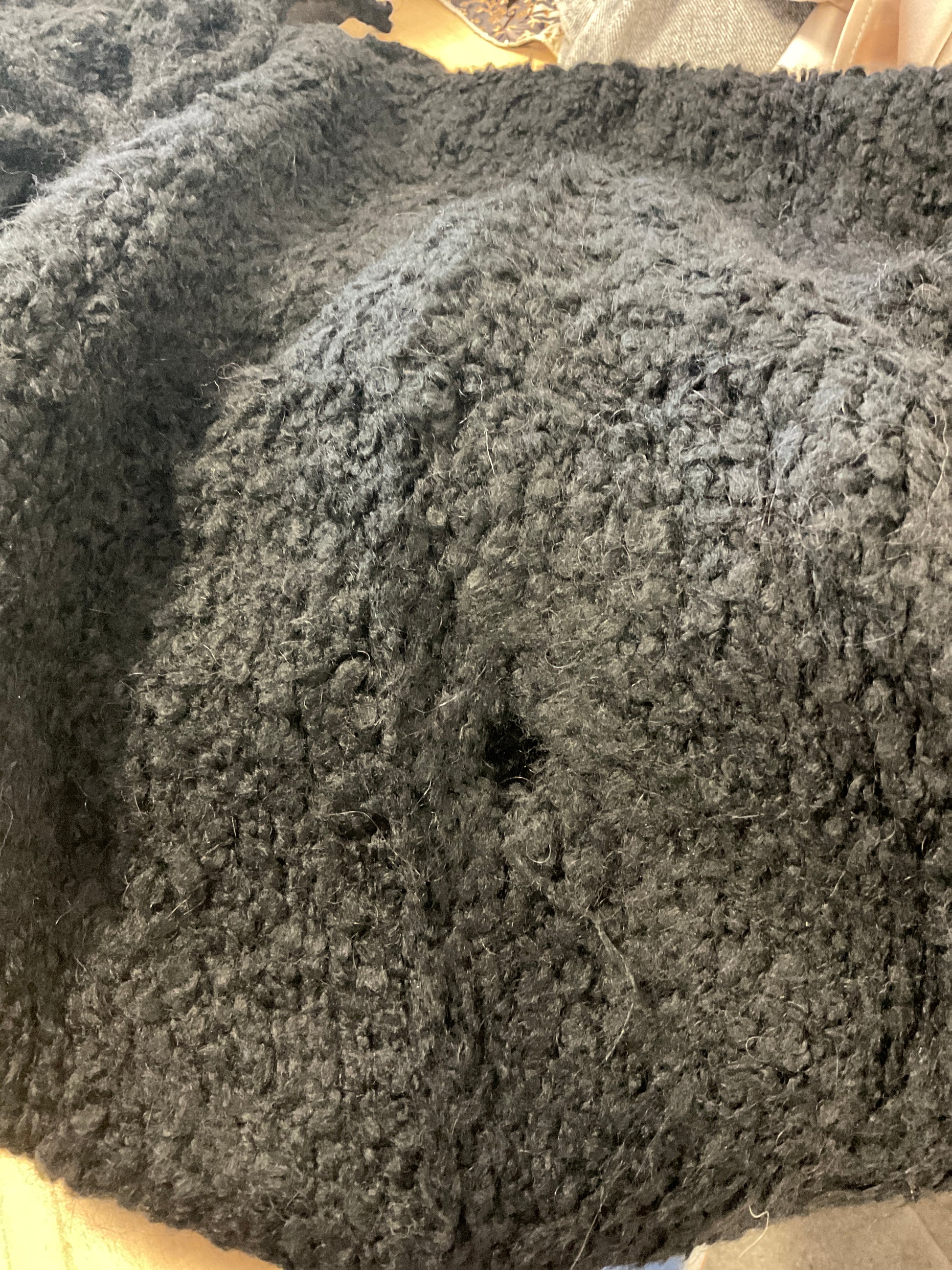 Defekte schwarze geknotete Weste