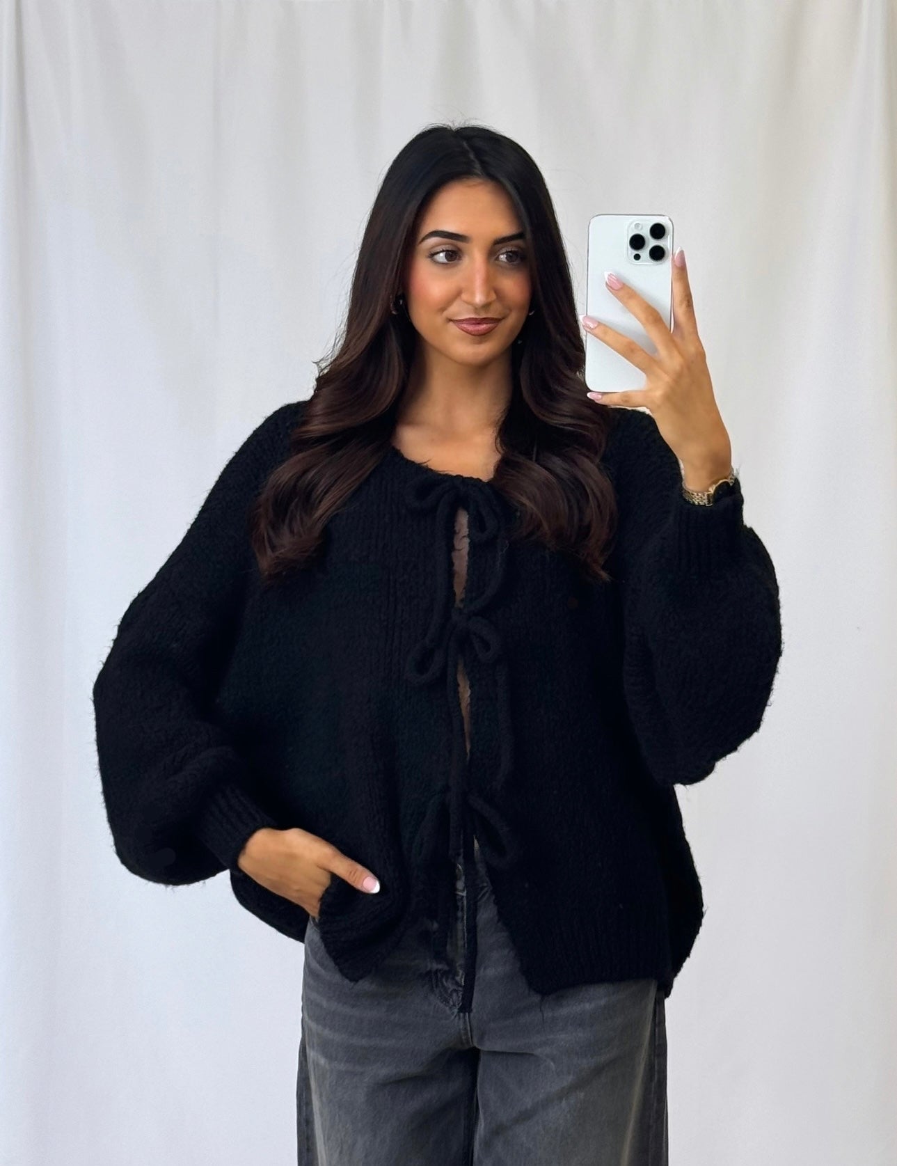Das Model ist 1,74 m groß und trägt normalerweise Größe S.