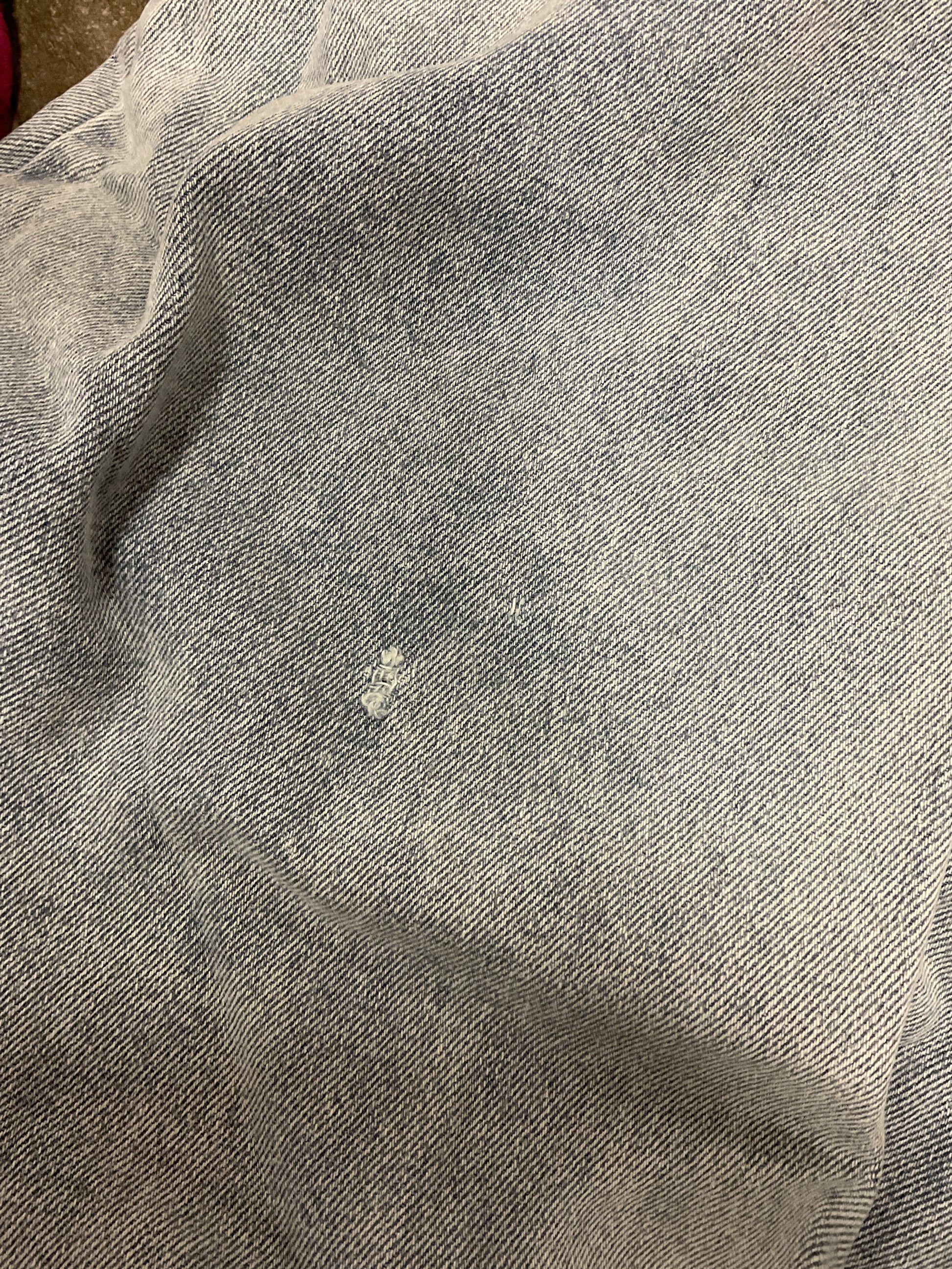 Jeanskleid in Größe M mit einem Defekt am rechten Ärmel.