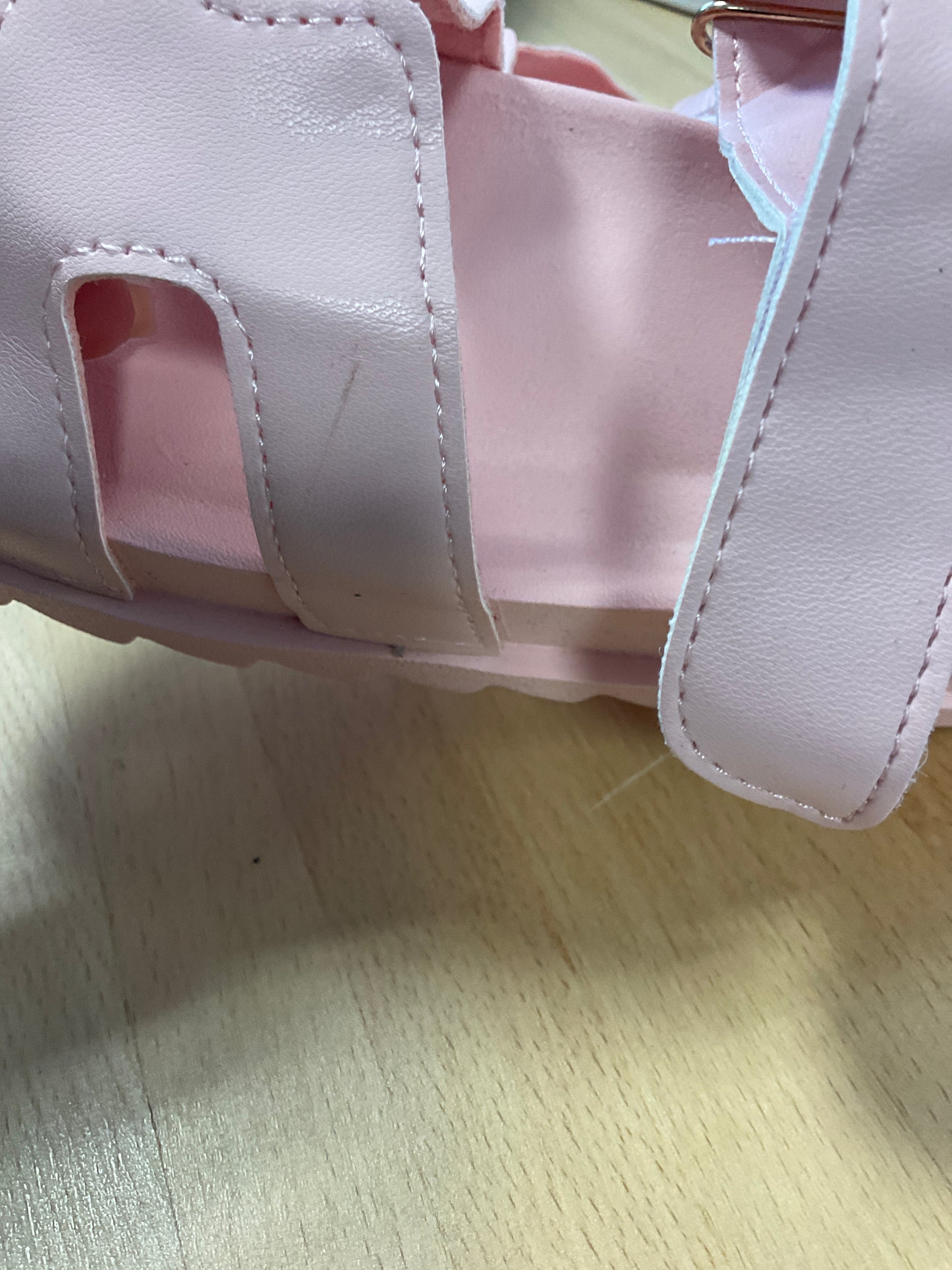 Defekte rosa Sandalen