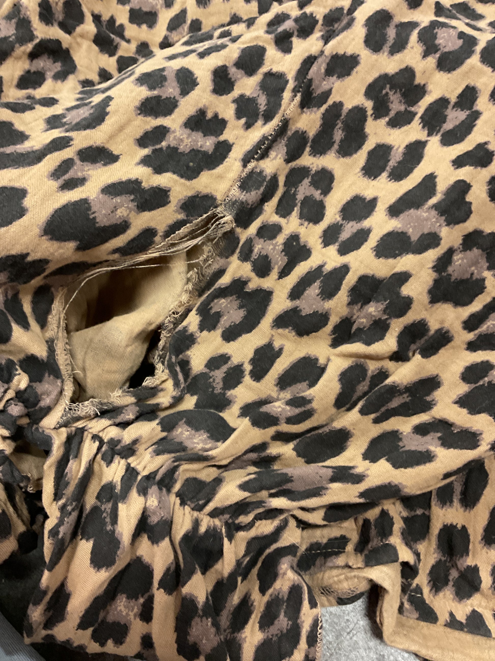 Combinaison léopard défectueuse - trou juste en dessous du décolleté.