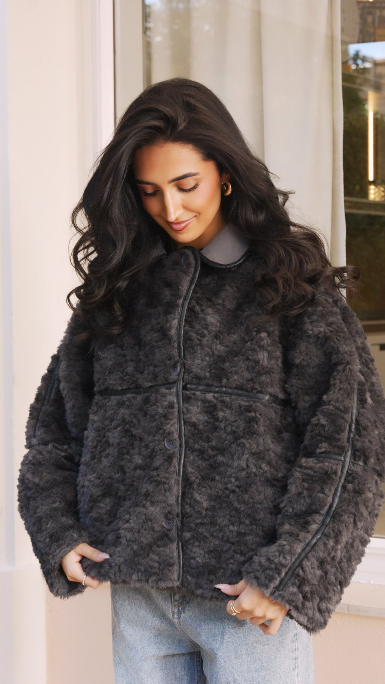 Veste oversize curly grise